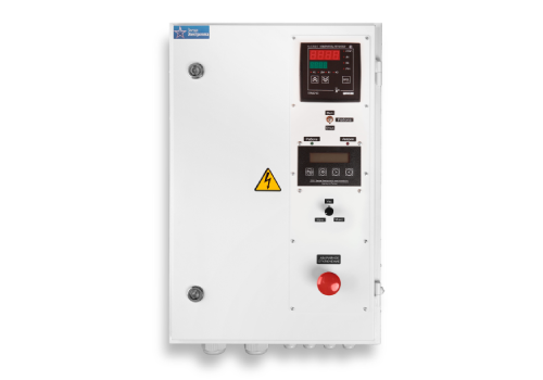 В состав щита управления печью входит терморегулятор ТРМ210 или ТРМ251. Его задача измерение температуры по сигналу с датчика температуры и вычисление управляющего воздействия на тиристорный регулятор, который будет автоматически управлять мощностью в печи, не забывая об особенностях данного вида нагревателей. ТРМ210 позволяет поддерживать температуру на заданном уровне, а ТРМ251 – более сложный прибор, он может работать по программам технолога: нагрев до нужной температуры за определенное время, выдержка, охлаждение.